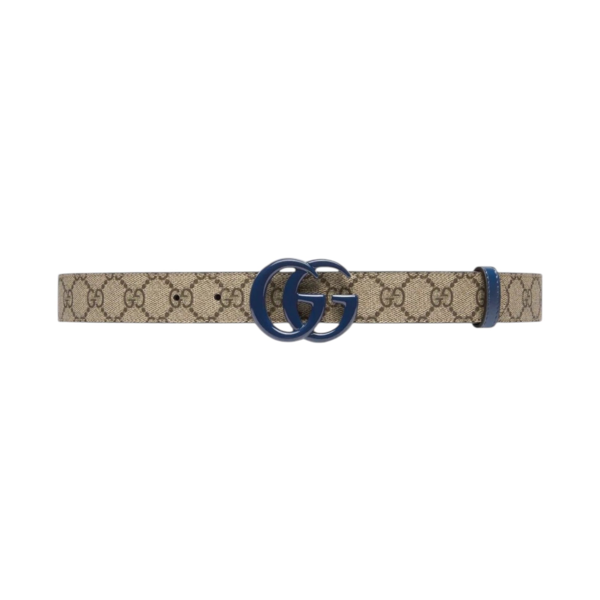 - Beige GG Supreme with blue buckle