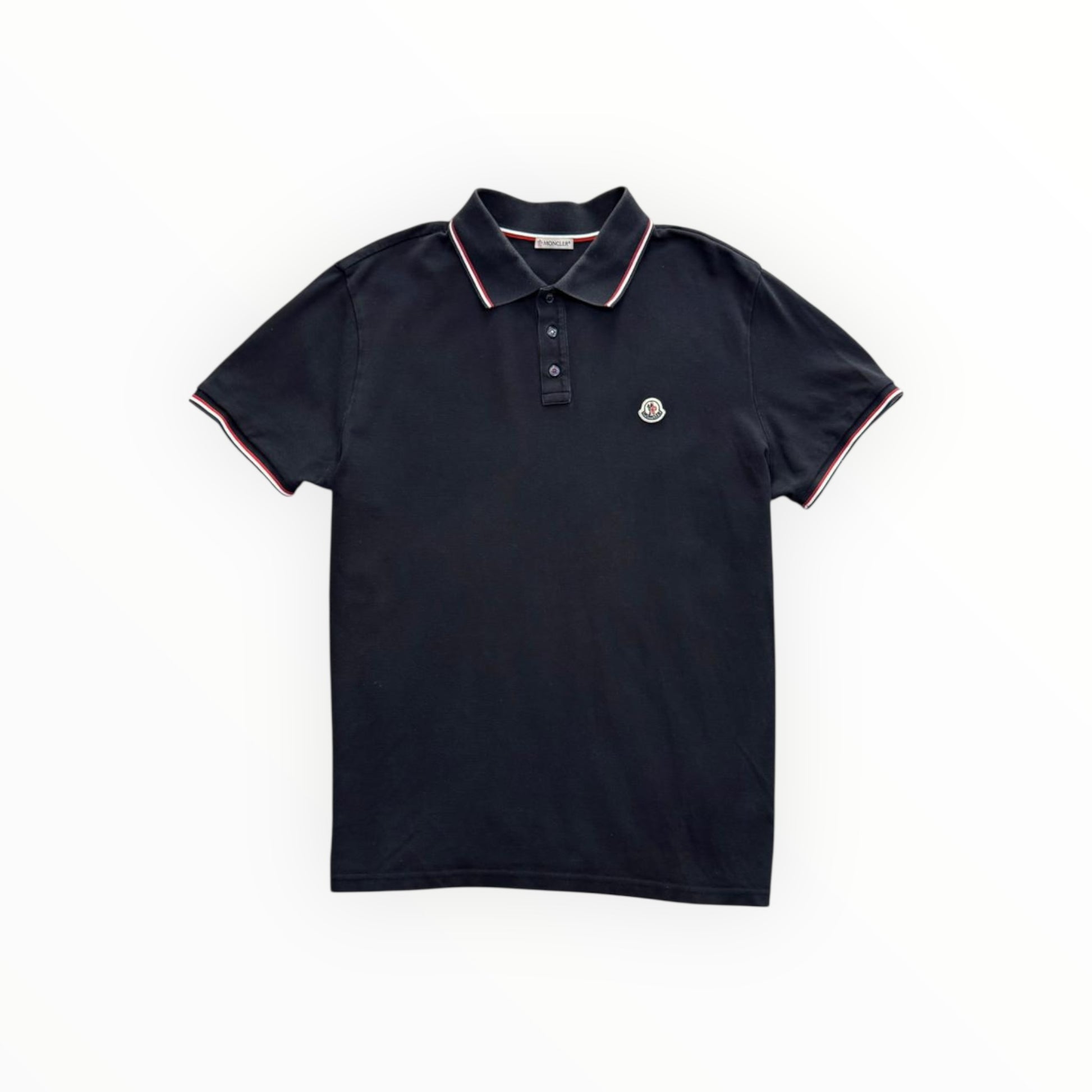 Classic Moncler polo with signature logo and stripe detailing.